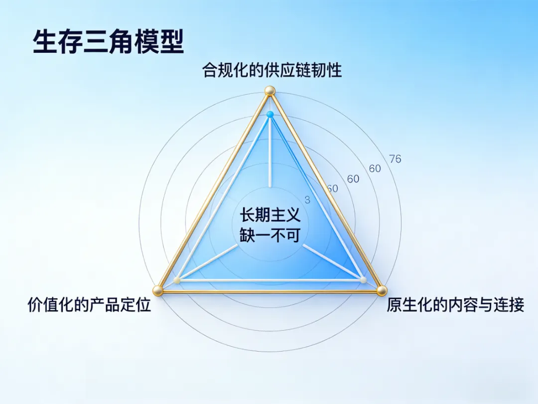 面对确定性趋势,卖家需围绕“生存三角”重构资源与能力,三大支柱缺一不可。