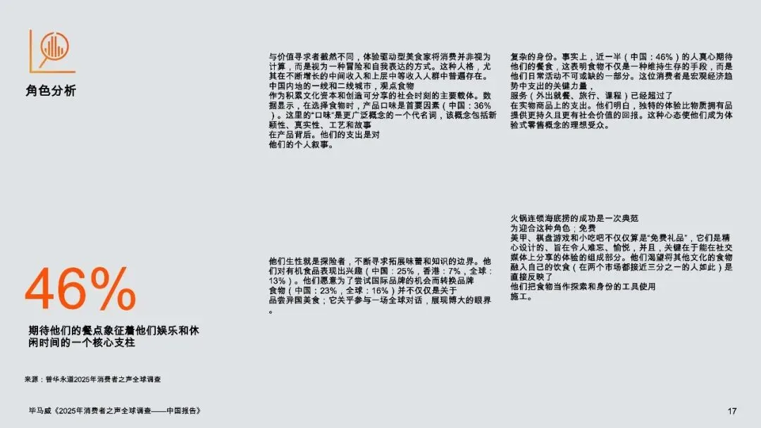 逻辑线清晰指向“消费分层的精细化”:宏观不确定性并未扼杀消费升级,反而催化了消费动机的“价值分层”——基础需求由极致性价比满足,而升级需求则与个人健康、文化认同及可持续价值观深度绑定。这要求品牌必须告别模糊的“大众营销”,在五个细分画像中精准定位,用截然不同的价值主张打动人心。