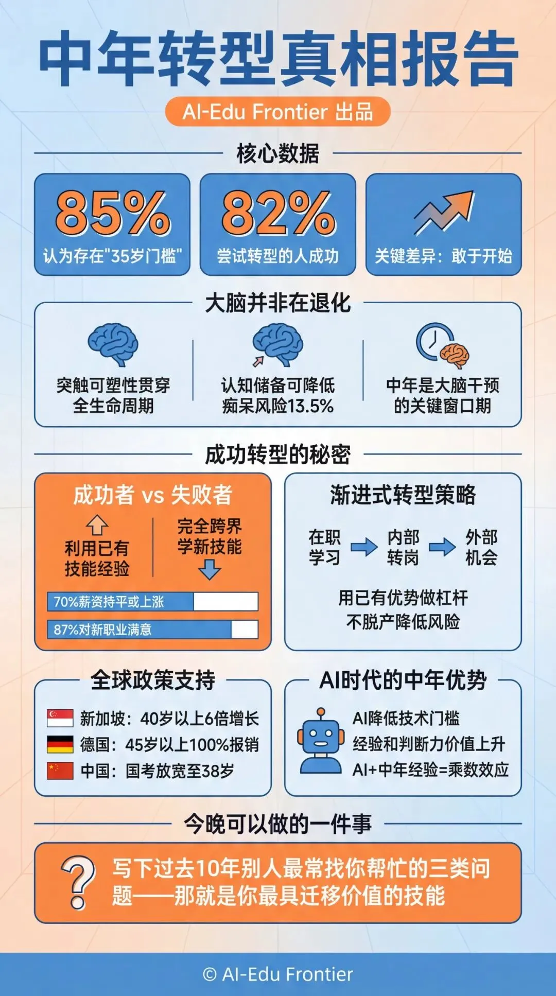 神经科学证明,你的大脑并未"退化";全球案例证明,系统支持下的转型是可行的;AIER的数据证明,利用已有优势的渐进式转型成功率很高。
