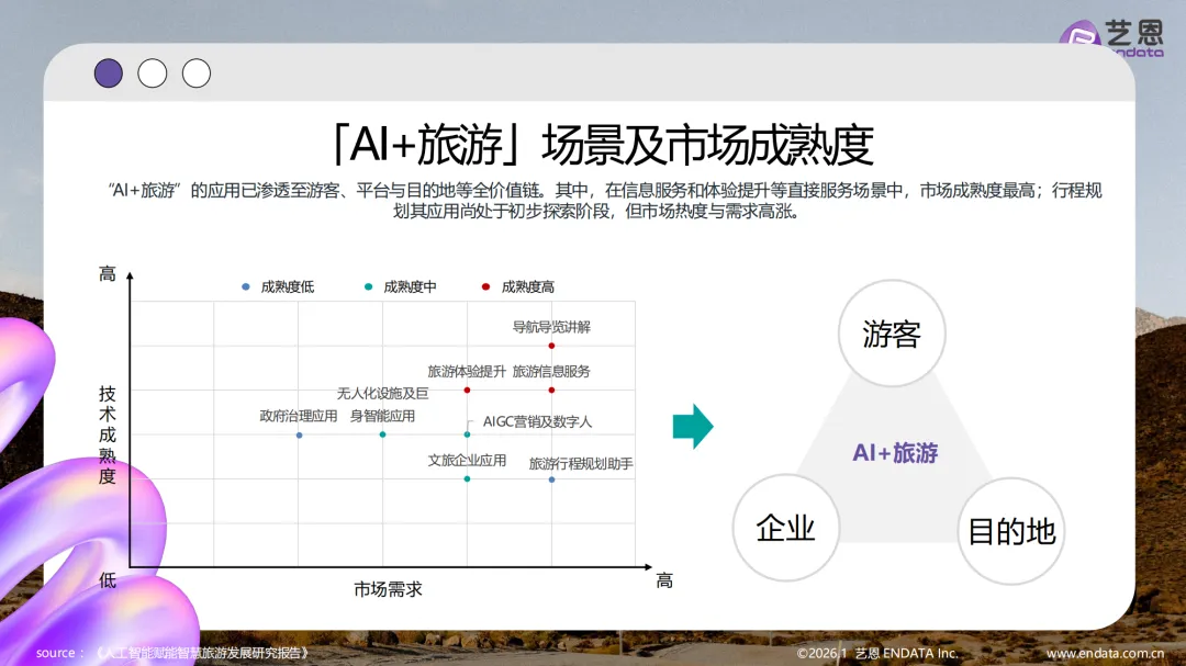 近日,艺恩发布《2026智旅新纪元:AI 与旅游产业融合全景报告》。报告基于行业数据与场景实践,聚焦 AI 对游客、企业、目的地的全链路赋能,揭示 “技术协同、体验升级、效率革新” 的智旅发展新逻辑,为行业转型提供参考。