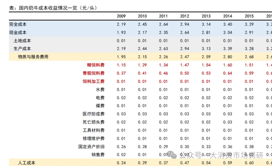 原奶生产成本主要受饲料原料价格影响