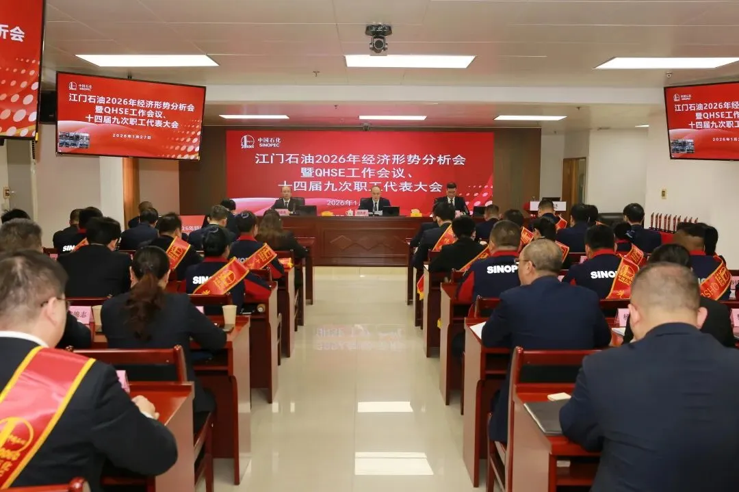 1月27日,江门石油召开2026年经济形势分析会暨QHSE工作会议、第十四届九次职工代表大会。