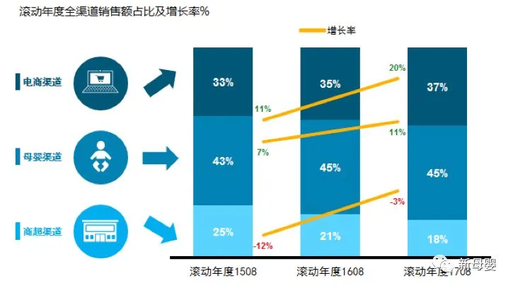 (编者按:由此可以看出,相对于电商渠道销售量的增长,受到冲击的并非是母婴渠道,而受影响的仍然是商超渠道。)