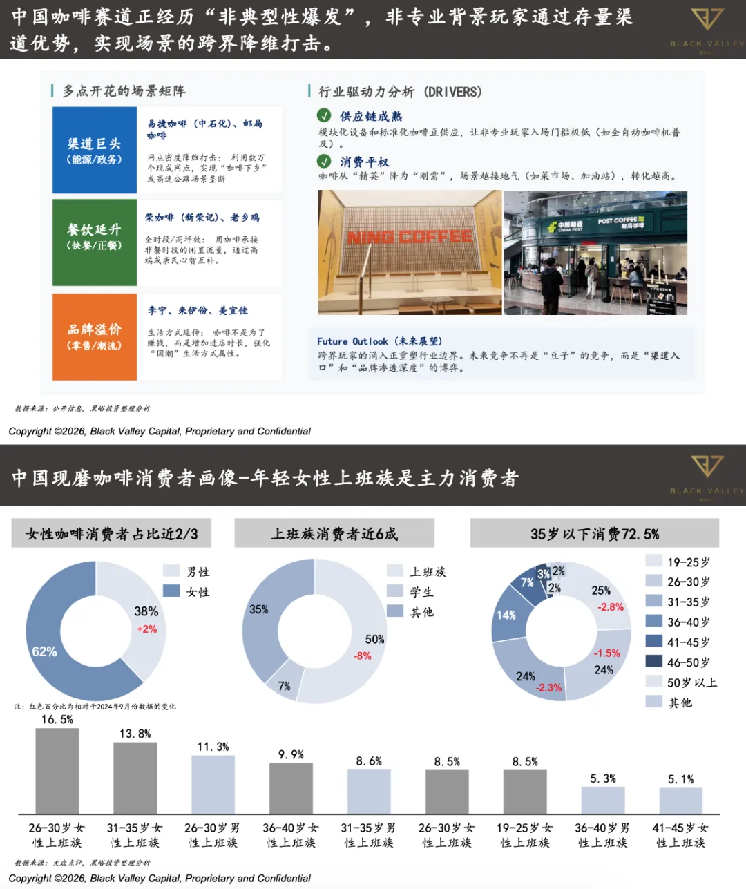 中国消费:现磨咖啡主导市场,门店下沉,客单价下滑。