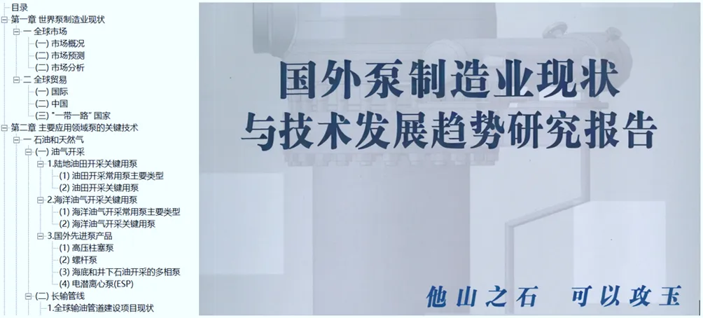 《国外泵制造业现状与技术发展趋势研究报告》共包括五章和1个附件: