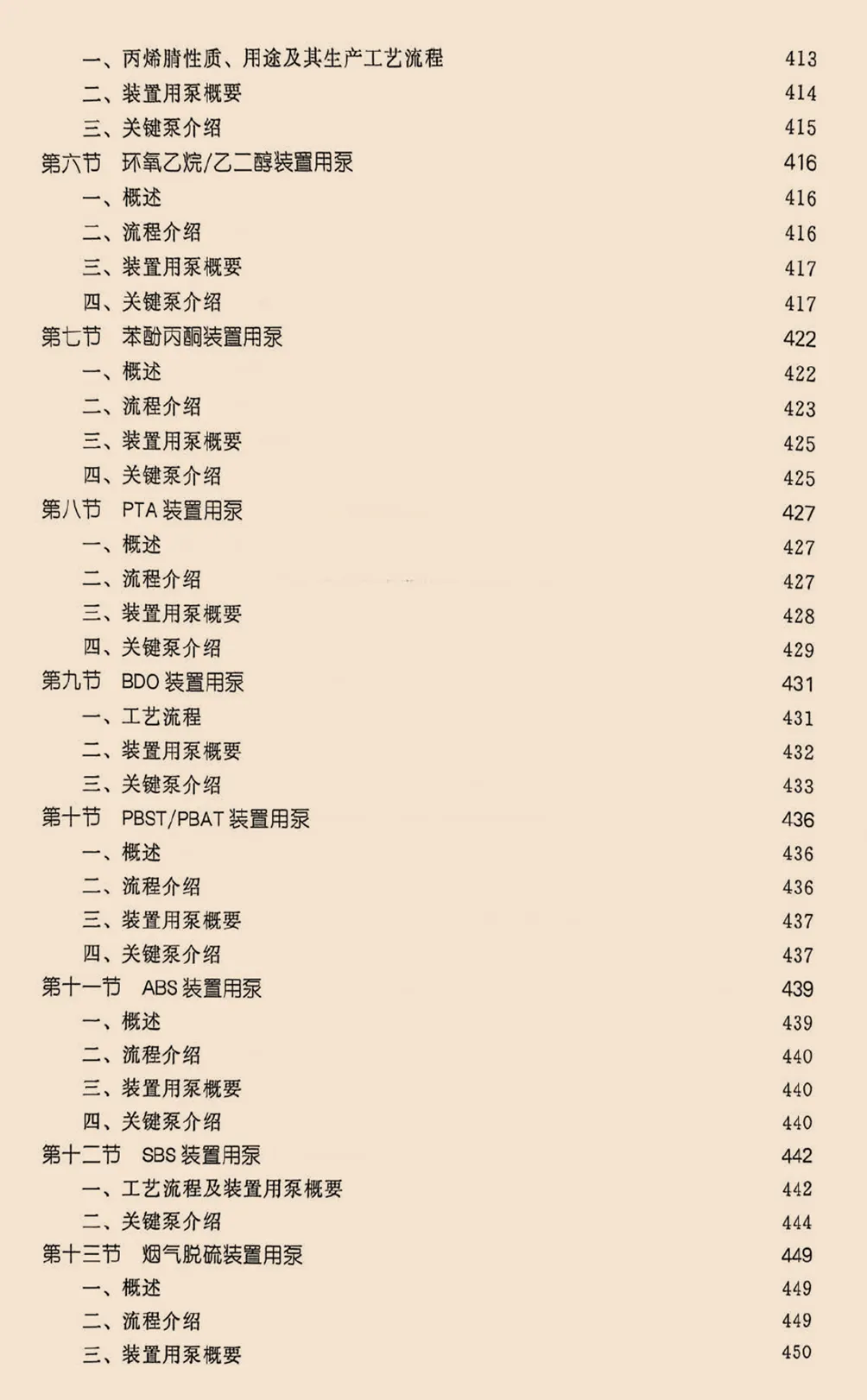第三篇内容来源于工程公司设计或总包的工业装置,对工业装置用泵的最新发展和新工艺及用泵的特点进行介绍,包括乙烯、合成氨、尿素、烧碱和纯碱、聚氯乙烯、丙烯精、环氧乙烷/乙二醇、PTA、煤制甲醇、磷酸磷铵、硫酸、钛白粉、多晶硅等装置用泵,以及LNG接收站用泵、公用工程用泵、医药工业用泵等。新增原油开采、储存、输送装置用泵,烯烃分离、聚丙烯、苯酚丙酮、BDO、PBST/PBAT、ABS、SBS、POSM等石油化工装置用泵,常减压、催化裂化、催化加氢、催化重整、延迟焦化、烷基化、芳烃等炼油装置用泵,新增煤制乙二醇、甲醇制烯烃、煤制油等煤化工装置用泵等内容。