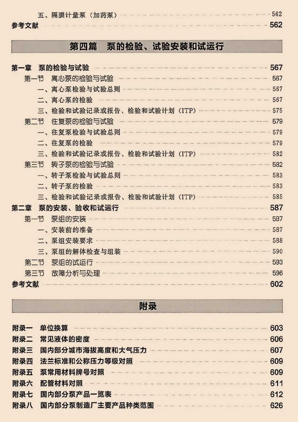 第四篇介绍了泵的检验与试验,泵的安装、验收和试运行等。