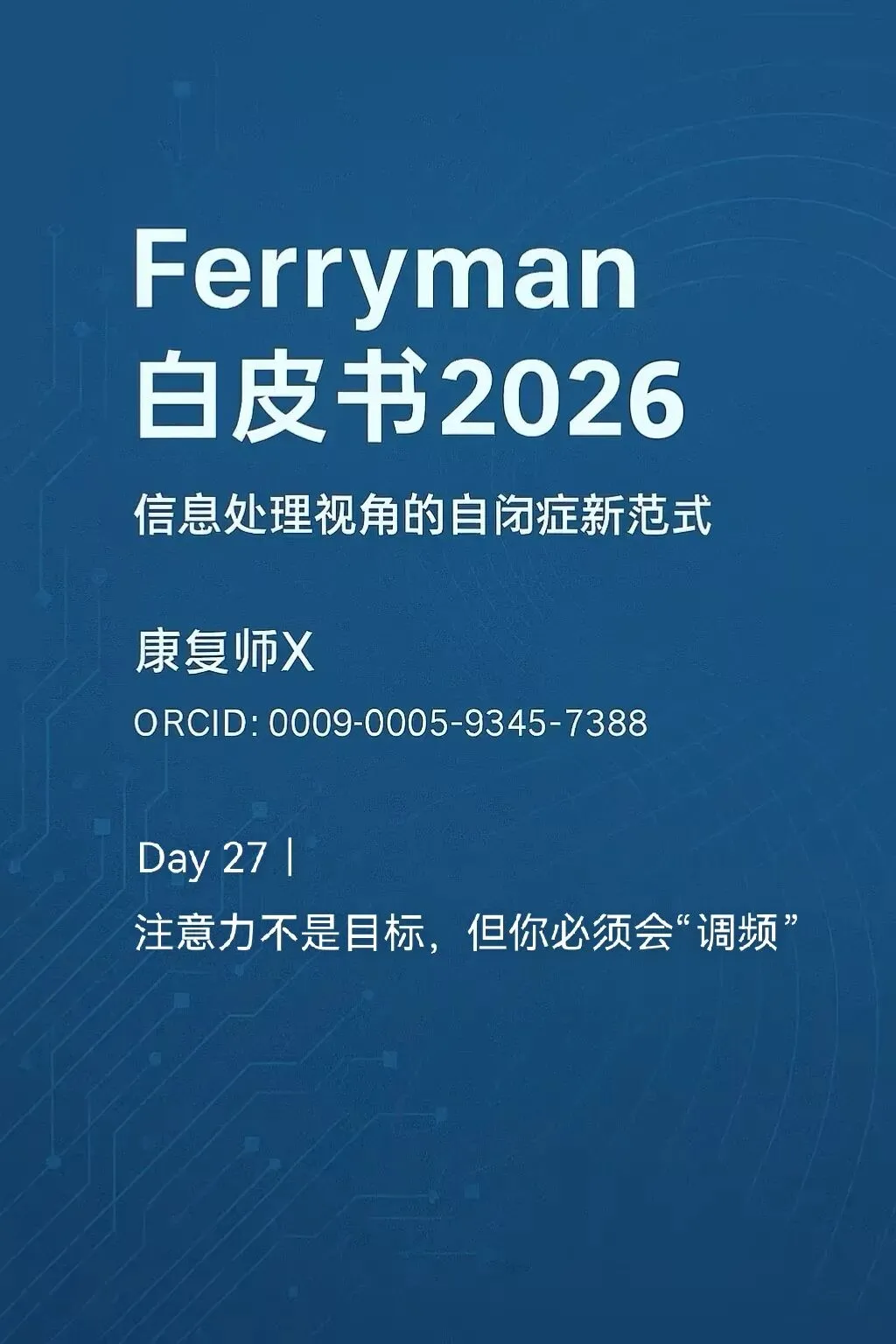 本白皮书《Ferryman 白皮书 2025:信息处理障碍视角下的自闭症干预模型》及系列内容为 康复师X(Ferryman 体系)原创,享有完整著作权。