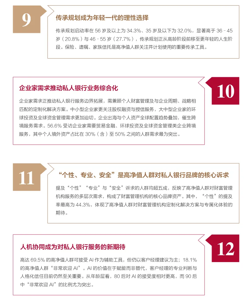 同时白皮书清晰揭示:中国高净值人群的财富管理正从“资产增值”向“综合服务+代际传承+全球布局”的系统工程演进。