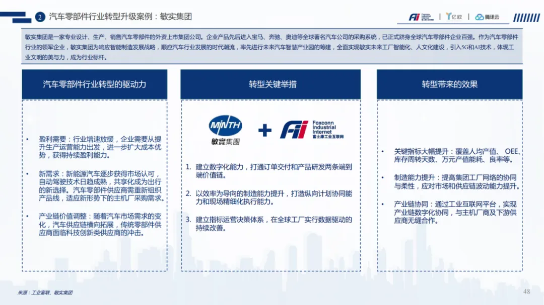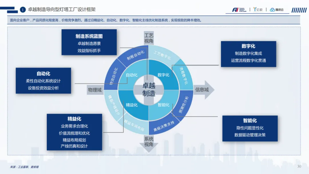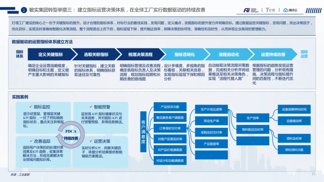 灯塔工厂白皮书深度解读:中国制造业数字化转型的路径、方法与启示最近,工业富联联合亿欧智库、腾讯云发布的《灯塔工厂白皮书》,在制造业与数字化交叉的圈子里引起了不小的震动。这份材料不仅系统梳理了中国制造业的现状与挑战,更难得的是,它提出了一套可落地的转型框架与实践路径。作为一名长期关注工业数字化和智能制造方向的顾问,我从这份白皮书中提炼出几个关键洞察和方法论,希望能为你接下来的项目带来启发。一、中国制造业的十字路口:不只是技术问题,更是系统问题白皮书开篇就指出,中国制造业正站在“十字路口”。这句话背后,其实是一个系统性问题:产业环境:中国制造业体量全球第一,但多数仍处于“微笑曲线”底部,附加值低、抗风险能力弱。客户需求:消费升级、个性化定制、服务化延伸,倒逼制造体系从“批量生产”走向“柔性响应”。技术基础:虽然我们在5G、AI、IoT等领域有后发优势,但在芯片、工业软件、高端传感器等关键环节仍被“卡脖子”。人才与组织:工程师红利显著,但基层工人流失,跨领域数字化人才严重短缺。我们不能只盯着“上系统、接平台”,而要站在企业价值链的全局视角,识别出哪些环节最值得数字化、哪些能力最需要补课。“痛点识别+价值定位” 是项目启动前的必修课。二、灯塔工厂:不只是“无人车间”,而是“最小转型系统”白皮书中对“灯塔工厂”的定义非常务实:它不是终点,而是智能制造的一个里程碑,一个可复制、可扩展的最小转型系统。三大抓手:卓越制造体系、全场景客户价值、创新业务模式其中最让我有共鸣的是,灯塔工厂强调 “组织与文化转型” 与“技术落地”并重。很多企业投入巨资引入MES、ERP、IoT平台,但组织架构还是职能筒仓,数据不互通、决策不协同,最终系统沦为“花瓶”。在推动项目时,一定要同步设计组织演进路径——包括岗位设置、绩效机制、人才培养、数据文化。可以参考白皮书中提到的“灯塔学院”模式,把数字化转型变成一场“全员升级”。三、三种实施路径:你是哪一类制造企业?白皮书根据企业所处产业链位置和产品特性,将灯塔工厂的实施路径分为三类:关键词:精益化 → 自动化 → 数字化 → 智能化不要套用同一套模板。建议在项目前期就做好企业画像,明确其产业定位、客户结构、技术基础,再选择最适合的切入点和场景。四、从“数据打通”到“价值闭环”:工业互联网平台的实战逻辑白皮书中多次提到“数据打通”,但并不是为了打通而打通,而是为了形成端到端的价值闭环。比如在“订单全生命周期”场景中,从客户下单、排产、物料计划、生产执行到交付售后,数据必须实时流动、反向优化。这就要求企业具备:我们在设计数据中台或工业互联网平台时,不能只做“数据湖”,而要明确每一个数据流支撑哪些业务决策、优化哪些运营指标。数据价值一定要体现在KPI上,比如订单交付周期、库存周转率、设备OEE等。五、案例不只看热闹,要看“门道”这些案例背后都有一个共同逻辑:数字化转型不是一次性项目,而是持续迭代的能力建设过程。我们在为客户设计转型路线图时,也要遵循“规划—设计—建设—推广—提升”的闭环,并且每个阶段都要有明确的验收标准和迭代机制。结语:灯塔不是终点,而是航标李杰教授在序言中说:“灯塔工厂不是目的,而是一个阶段、一个里程碑,是一个重新塑造自己、塑造中国制造业的开始。”这句话对我触动很深。作为数字化顾问,我们不是在交付一套系统、一个平台,而是在帮助企业构建一种持续进化能力。灯塔工厂的意义,不在于它有多“黑科技”,而在于它验证了一条可行的路径——让中国制造从“加工”走向“智造”,从“制造”走向“创造”。如果你也在推动制造业数字化转型,不妨把这份白皮书当作一份“地图”,结合企业实际,找到最适合的“航线”。