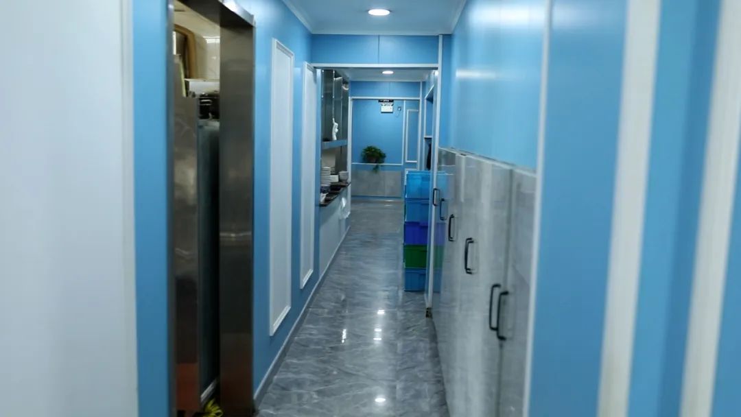 存在隐患:1、疏散通道被消毒碗堵塞;2、疏散标志未完好有效;3、后厨未与大厅进行防火分隔。