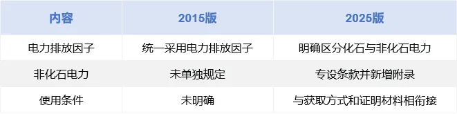 使非化石能源电力排放因子的使用,从过去相对约定化的处理方式,转向规则化、可验证的核算要求。