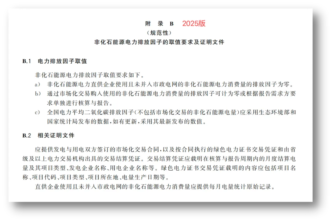 在GB/T 32150-2025中,标准通过正文条款和附录,对非化石能源电力排放因子的取值原则作出了更为系统和明确的规定。