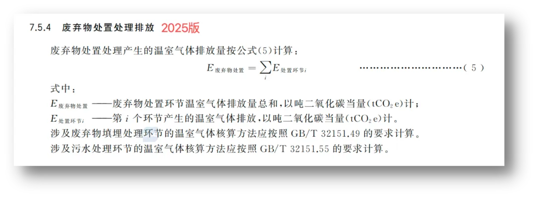 在2025版中,标准在核算流程中明确将废弃物处置和处理排放单列出来,并提出应按照相关行业或专项核算标准进行核算和衔接。