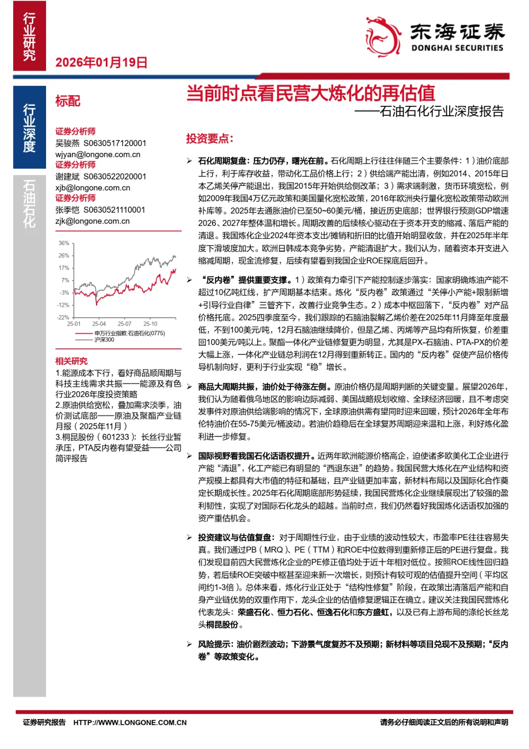石油石化行业深度报告:当前时点看民营大炼化的再估值-东海证券