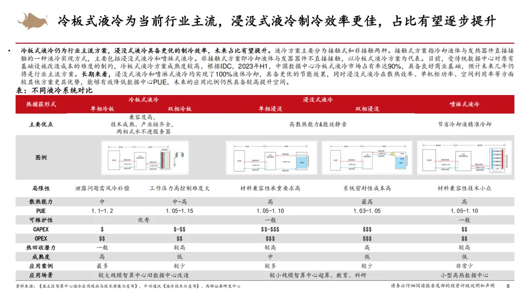 全球数据中心已迈入智能算力中心时代,2025 年全球市场规模预计达 1289 亿美元,国内虽起步晚但增长迅猛,2029 年市场规模有望达 3175 亿元。随着 AI 算力需求激增,单芯片功耗与机柜密度持续提升,2025 年全球数据中心单机柜平均功率将升至 25kW,传统风冷难以满足散热需求,且政策对数据中心 PUE 要求趋严,液冷技术凭借高散热效率与节能优势(PUE 可小于 1.25),成为主流制冷方案。