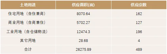 从土地用途看,供应面积和供应宗数均以工业用地(含仓储物流)为主,分别为12474.3亩和196宗,分别占总供应面积和总供应宗地的47.47%、40.08%。其次为住宅用地(含住兼商)。