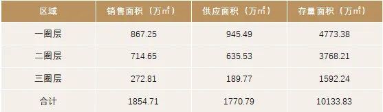 从区域看,2025年销售面积最多的仍为一圈层,为867.25万㎡,占总销售面积的46.76%,较2024年占比下滑2.19个百分点。