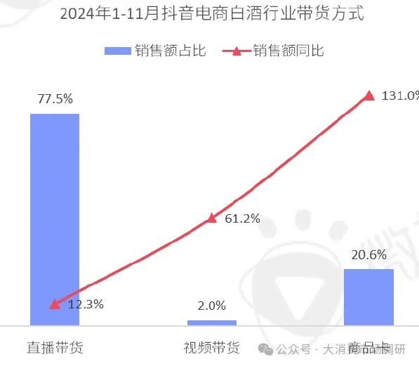 白酒行业以达播带货为主,商品卡对销售贡献成倍增长