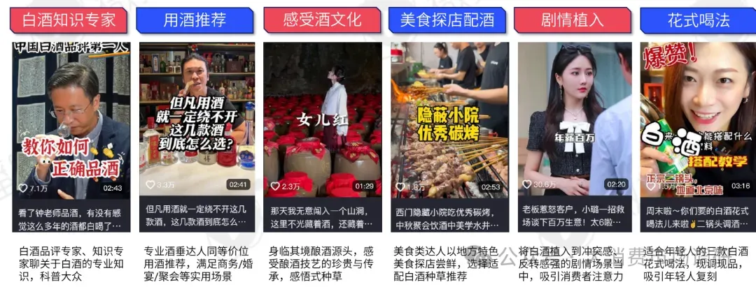 白酒内容覆盖面广,兼顾酒知识、文化与探店、剧情、喝法植入