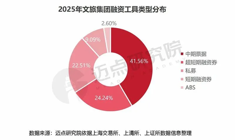从融资工具类型分析,中期票据占比最高,约42%,为核心主导;其次为私募和超短期融资券,二者占比相当,合计约46%;短期融资券和ABS占比相比较低,分别约为9%、3%。相较而言,文旅项目投资规模大、回报周期长的特性,中期票据可匹配中长期资金需求并优化债务结构;私募资金用途灵活、期限较银行贷款长,适配中小项目个性化需求;超短期融资券发行时间短、融资效率高,用于补充短期流动性;ABS类则主要依托酒店、安置房、美食城等不动产、基础资产发行,以资产信用为支撑。