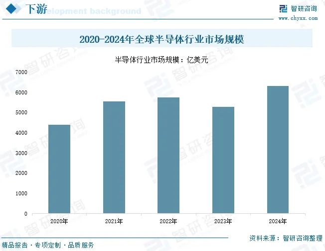 高纯铟是制备III-V族化合物半导体(如磷化铟InP、锑化铟InSb)的核心原材料。这些半导体在高频通信器件(5G/6G)、高速电子器件、红外探测器和激光器中性能卓越。半导体行业对材料纯度要求极其严格,极微量杂质的引入也会严重影响其本征理化性能,而高纯铟靶材能满足这一高要求。使用高纯铟靶材制备的半导体器件,性能稳定性大幅提升。近年来,随着5G发展,智能手机需求重新恢复增长,加之汽车电子、可穿戴设备、物联网、人工智能等新兴应用领域需求的推动,全球半导体行业市场规模呈现上升趋势,2024年中国半导体行业市场规模达到6305亿美元,较2020年的4404亿美元增长43%。