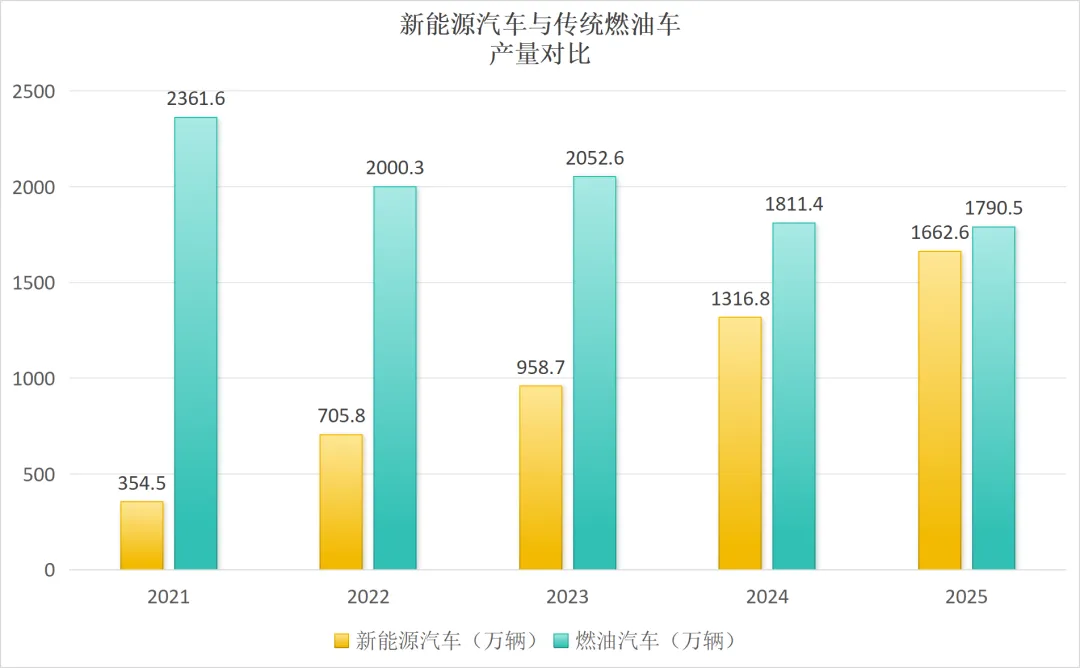 2025年,新能源汽车产销分别完成1662.6万辆和1649万辆,同比分别增长29%和28.2%,新能源汽车新车销量达到汽车新车总销量的47.9%,较去年同期提高7个百分点。
