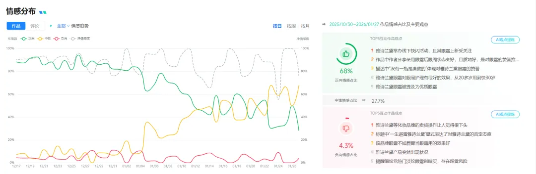 此外,它还能分析抖音内容的互动情况,梳理用户情感走势,帮助品牌清晰掌握抖音场景下的用户需求与口碑变化,为内容优化、活动调整提供精准依据。