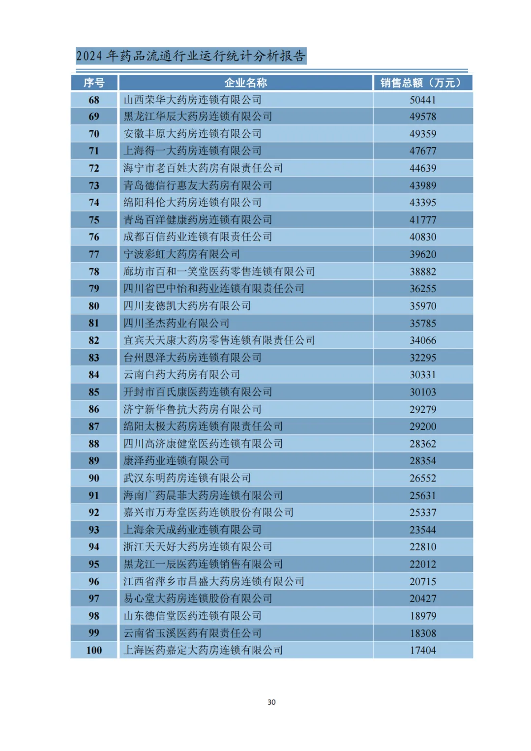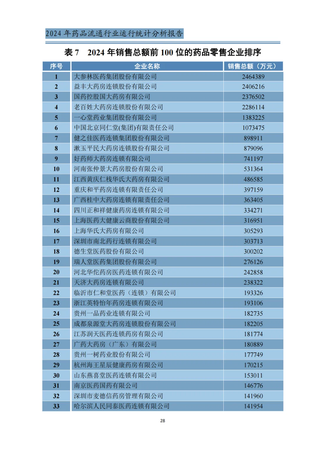 七大类医药商品销售总额 | 29470亿元 | 增长0.6% | 放缓6.9个百分点 |