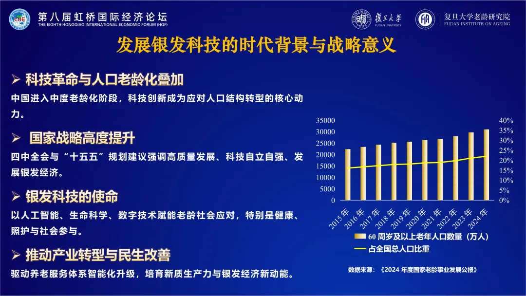 导读:中国已进入中度老龄化阶段,科技创新成为应对人口结构转型的核心动力,银发科技应运而生。其以提升老年人福祉为核心目标,综合运用多领域科学技术,具备跨界融合、老龄指向等核心特征,涵盖医疗健康、生活照护、精神文化与社会参与三大技术范畴,覆盖老年人生活十大需求场景。当前,我国银发科技在生命科学、人工智能应用等关键领域实现集群式突破,形成政策与市场双轮驱动的发展格局,2023 年研发投入超 4200 亿元。但发展中仍面临数据协同不足、人才体系待优化、适老设计不深化等问题。借鉴美英等国经验,我国需通过理念、融合、资本、标准认证的 “4C” 路径,从国家、企业、社会层面强化顶层设计、促进创新转化、提升社会参与,推动银发科技高质量发展,为老龄社会提供坚实支撑。