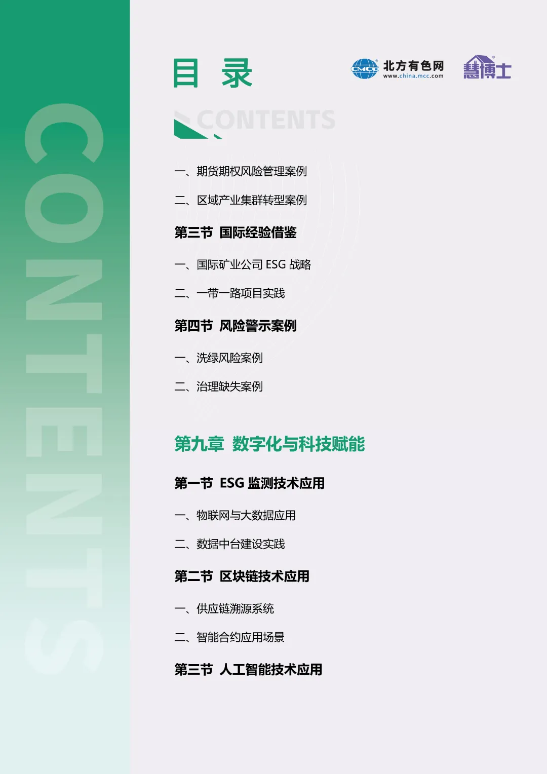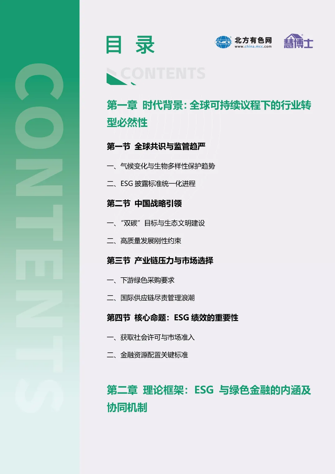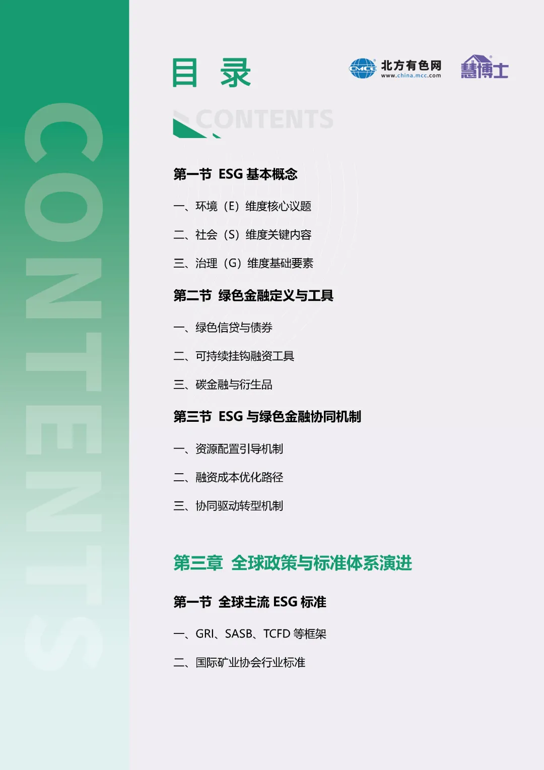 本报告的核心内容与逻辑框架如下:首先,从全球共识与中国战略出发,阐释行业转型的必然性。其次,构建ESG与绿色金融的理论基础,并详细解读全球及中国政策标准体系的演进。进而,基于详实的数据与案例,展示行业ESG整体表现及各维度进展,并重点探讨绿色信贷、债券、碳金融等多元化工具在行业中的创新应用。报告还针对铝、铜、新能源金属等重点品种的ESG关键议题进行产业链协同分析,并通过国内外正反典型案例,提炼经验与警示。