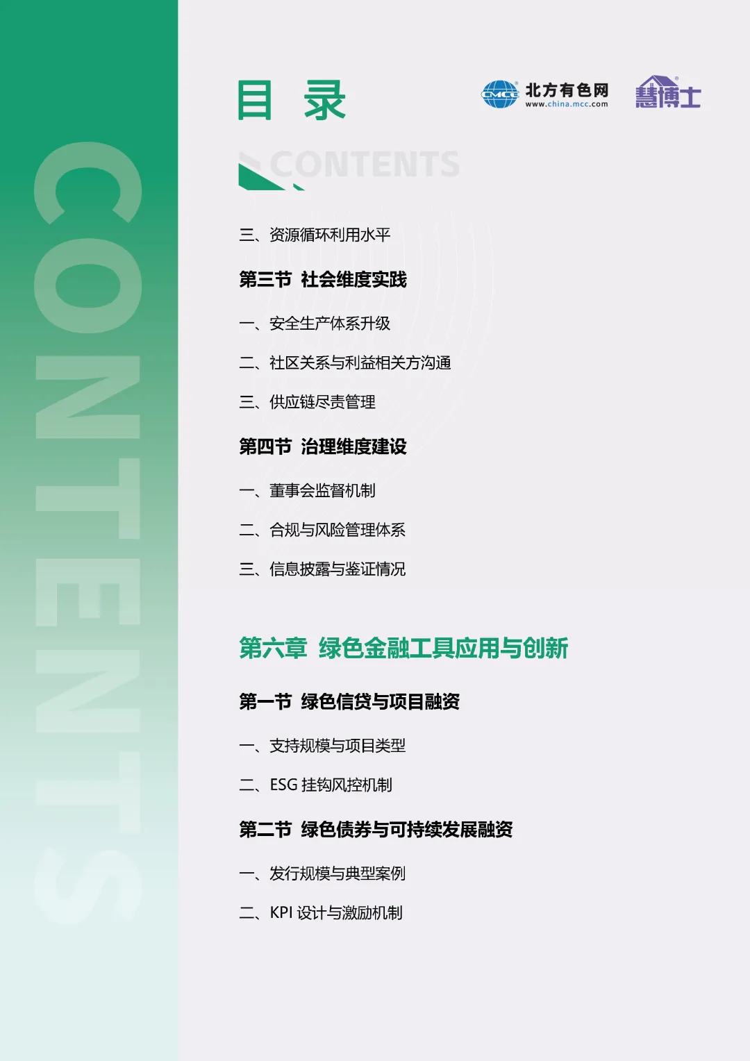我们期待本报告能够为有色金属企业、金融机构、政策制定者、投资者及所有关注行业可持续发展的利益相关方,提供一份兼具前瞻性、实用性与战略性的深度研究成果,共同助力有色金属行业迈向高端化、智能化、绿色化的高质量发展新阶段,为全球可持续议程贡献中国行业的智慧与解决方案。