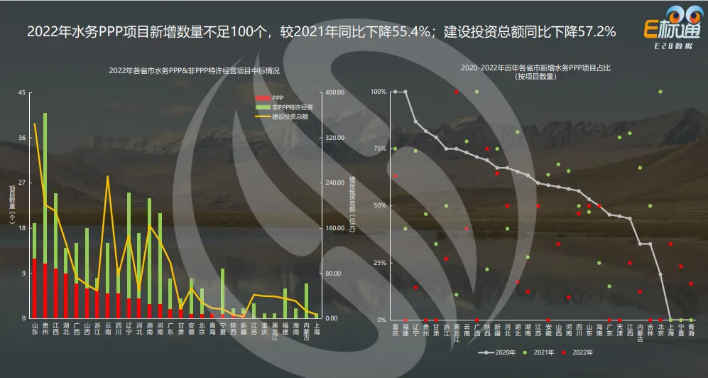 (2)2022年,新增水务PPP项目不足100个,同比55.4%,建设投资总额同比下降57.2%。