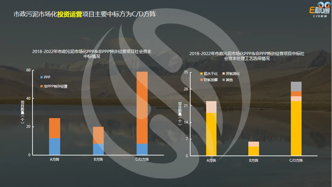 市政污泥PPP&非PPP特许经营项目的中标社会资本主要是C/D方阵,且C/D方阵中标的项目主要采用非PPP特许经营模式。
