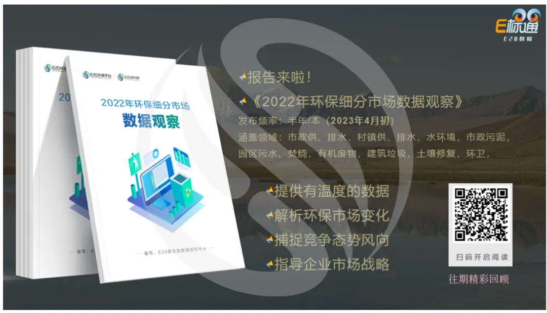 3月24日,2023年(第二十一届)水业战略论坛在北京举行的第二天,E20研究院产品化与数据研究中心行业分析师王妍在论坛上做了题为《数说环保:水务市场2022》的主题发言。本次报告借助E20环境平台E标通数据采集系统对最新的水务市场化项目进行梳理,旨在剖析水务行业近几年的市场现状,以供读者阅读。