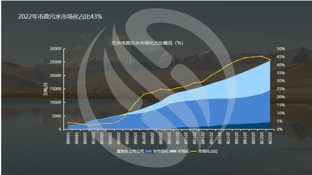 2022年市政污水市场化占比为43%,较2021年下降2个百分点。