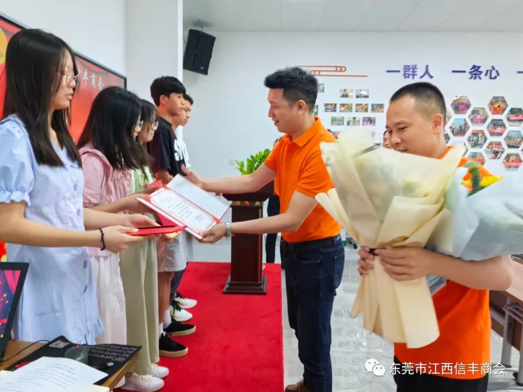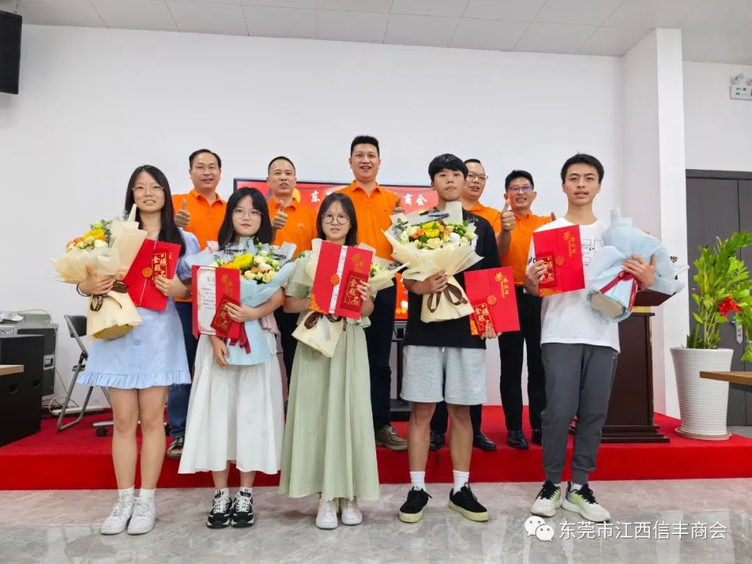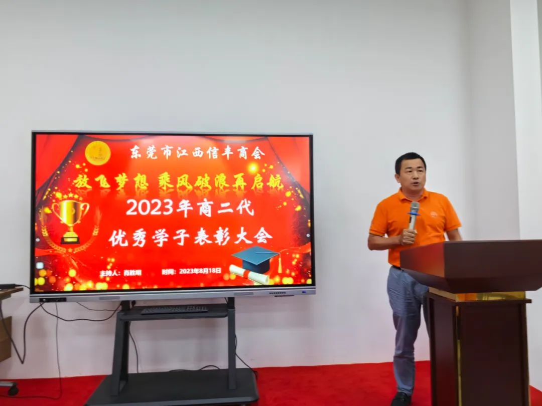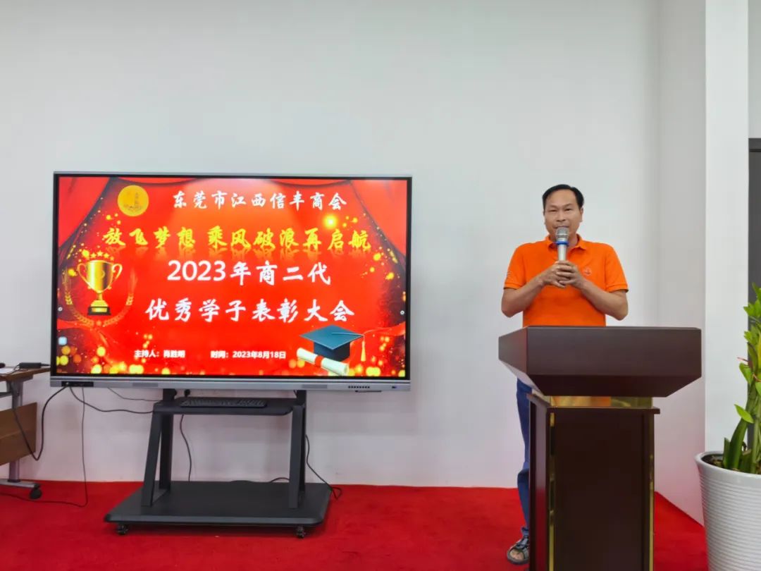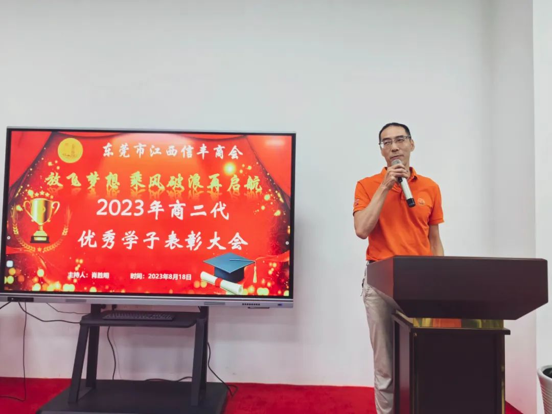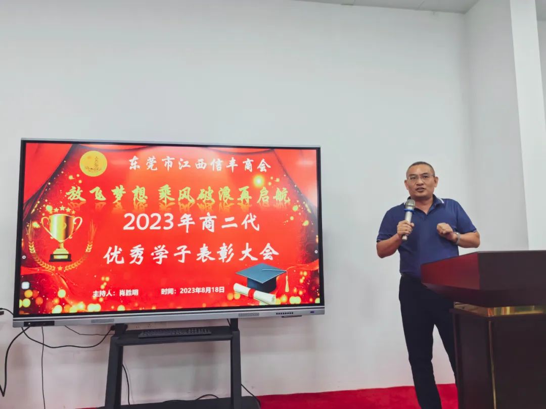 “放飞梦想 乘风破浪再启航”东莞市江西信丰商会在商会会议室举行2023年金榜题名学子表彰仪式。为优秀的信商二代高考生颁发荣誉证书及奖学金。东莞市江西信丰商会会长王诚伟,终身荣誉会长卢德光,执行会长陈厚敏、吕秋明、刘世文,监事长刘飞,秘书长肖胜明,常务副会长谢建民、黄春裕、王家玲、李晓城、丁家辉、黄际斌、副会长谢昌富、何建平、钟初平,会员刘翠桑及受表彰学子及其家长近40人参加了此次活动。活动由秘书长肖胜明主持。