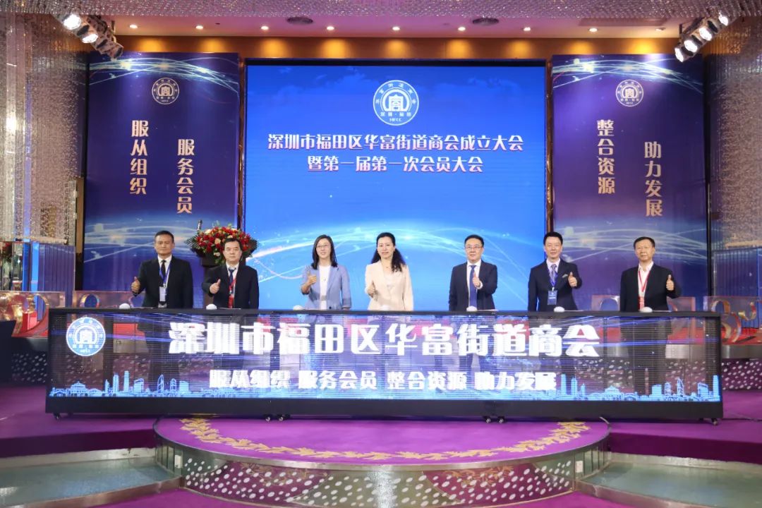 大会现场来自华富街道的50多家民营企业家共聚一堂,一起见证福田区华富街道商会成立大会的举行。大会上,由林育作《深圳市福田区华富街道商会申请成立街道商会的情况报告》,区工商联工作人员宣读了《关于同意成立深圳市福田区华富街道商会的批复》,表决通过了《深圳市福田区华富街道商会章程》《深圳市福田区华富街道商会选举办法》,选举产生了华富街道商会第一届领导班子,并举行了牌匾颁授仪式。伴随着大屏幕上的倒数,揭牌仪式启动,深圳市福田区华富街道商会正式成立。深圳市教育装备行业协会会长彭锦环当选深圳市福田区华富街道商会首届会长。深圳市教育装备行业协会会长单位心里程控股集团有限公司当选深圳市福田区华富街道商会会长单位。