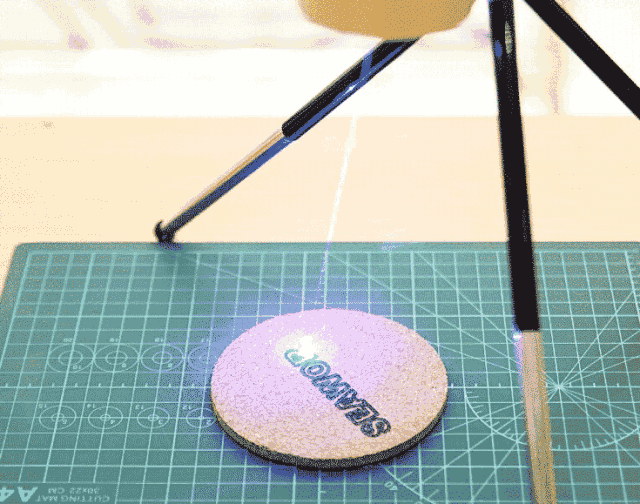 激光雕刻机功能也非常强大,它可以在毛毡、软木、厚纸板、皮革、塑料等多种材料上进行雕刻,你可以在一个废弃的软木片上刻出特制图案,这样就做出了专属杯垫。