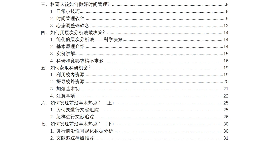 如何快速开展科研,实现进阶之路?时间管理,决策分析助你提升效率;与导师的沟通技巧,横纵向项目全解析等内容,帮你抓住更多科研机会;文献追踪,前沿性分析,让你永在科研一线热点。