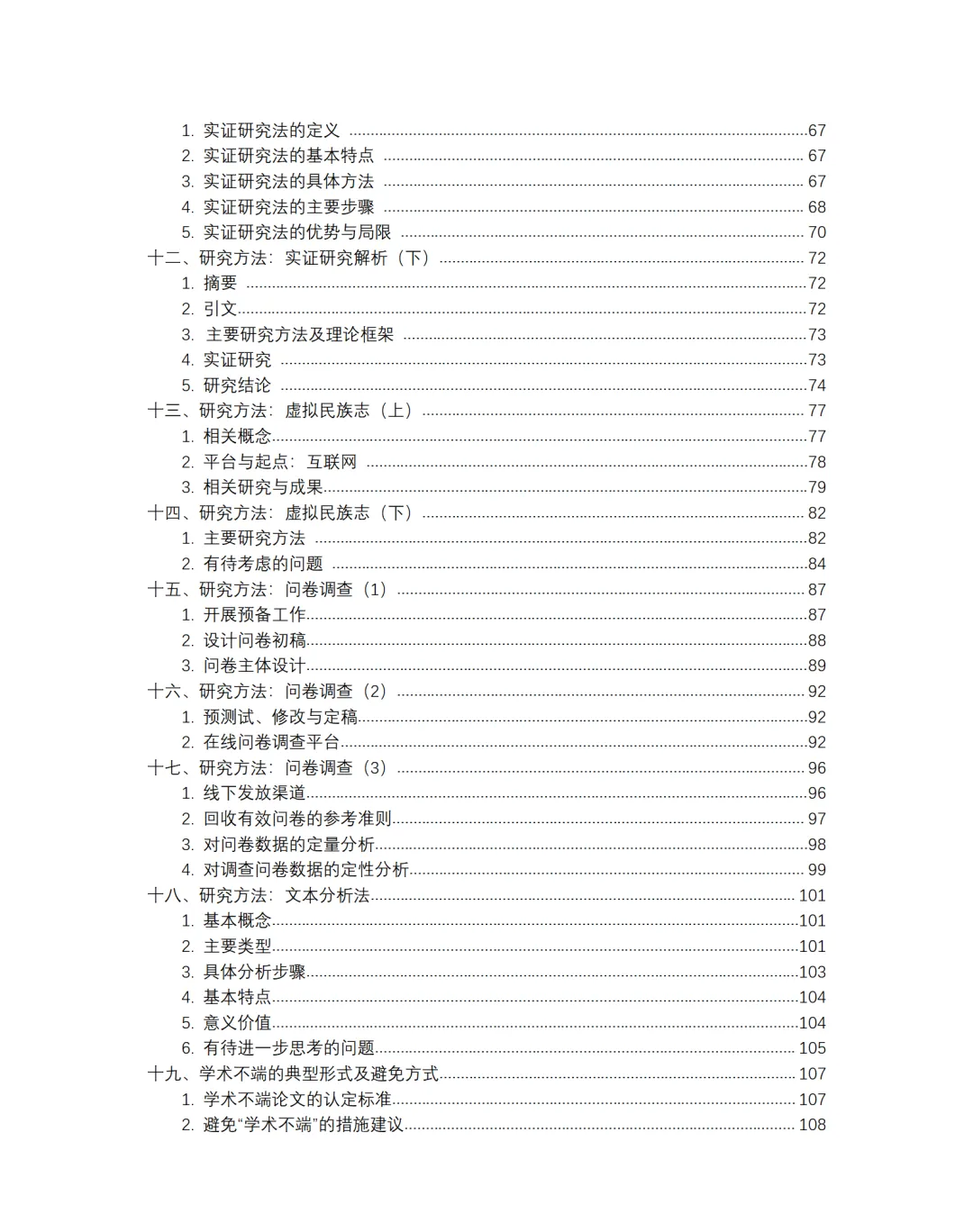 人文社科的小伙伴也别着急!这里有实证研究,虚拟民族志,问卷调查,文本分析,等多种常用研究方法,快速攻克研究方法难关。