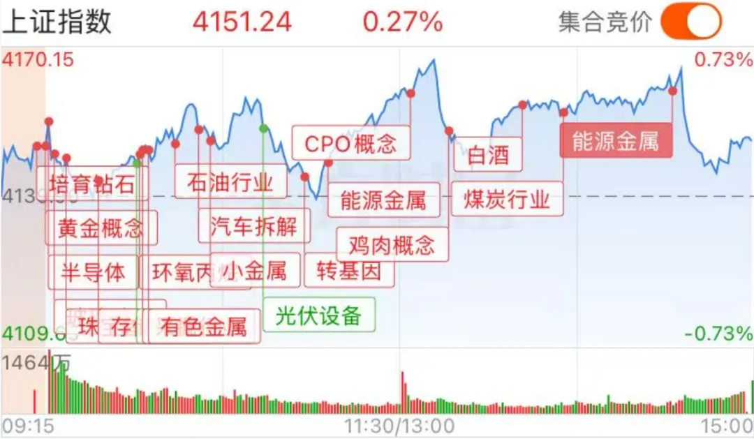 个股方面:涨少跌多,1739只个股上涨,3640只个股下跌。盘面上,全市场超3600只个股下跌。从板块来看,资源股全天领涨,贵金属、油气、电解铝方向轮番爆发,中国黄金4连板,湖南黄金3连板,中曼石油、晓程科技3天2板,四川黄金10天6板,招金黄金8天5板,石化油服、准油股份涨停,中国铝业涨停创16年新高。分散染料概念集体走高,浙江龙盛、闰土股份、亚邦股份涨停。存储芯片概念表现活跃,中微半导触及20CM涨停,气派科技20CM涨停。下跌方面,医药医疗、光伏等板块跌幅居前。其中医药医疗概念走弱,百普赛斯、必贝特跌超10%,恒瑞医药11连阴。