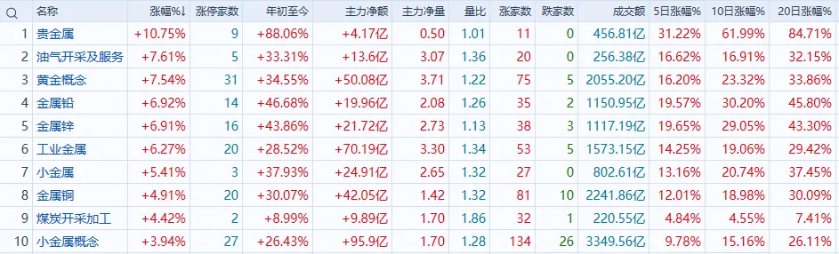 贵金属:板块大涨10.75%,近20只个股涨停,湖南黄金、招金黄金、中国黄金等多股连板。