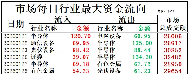 资金净流出前列:光伏设备、电池、汽车零部件等净流出排名靠前,其中光伏设备净流出61.23亿元。