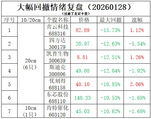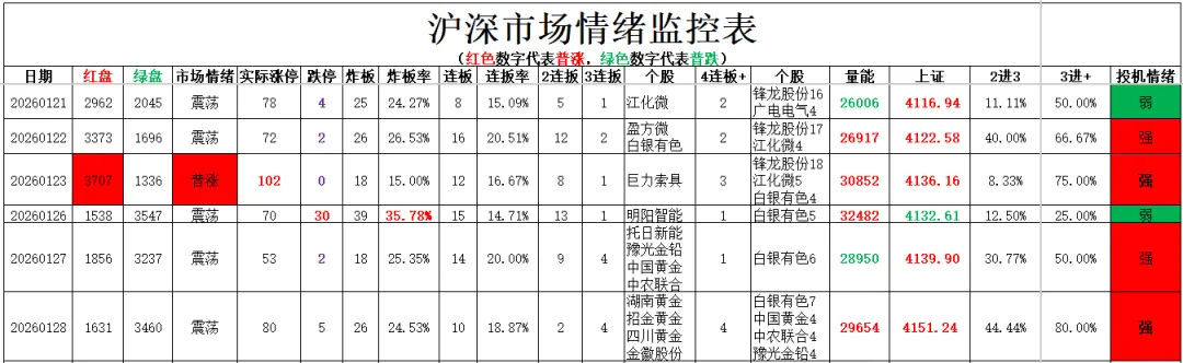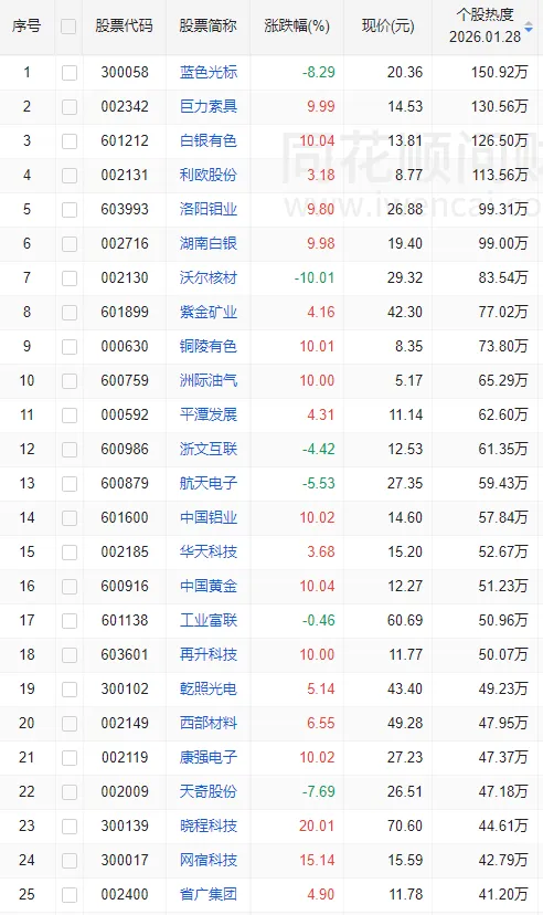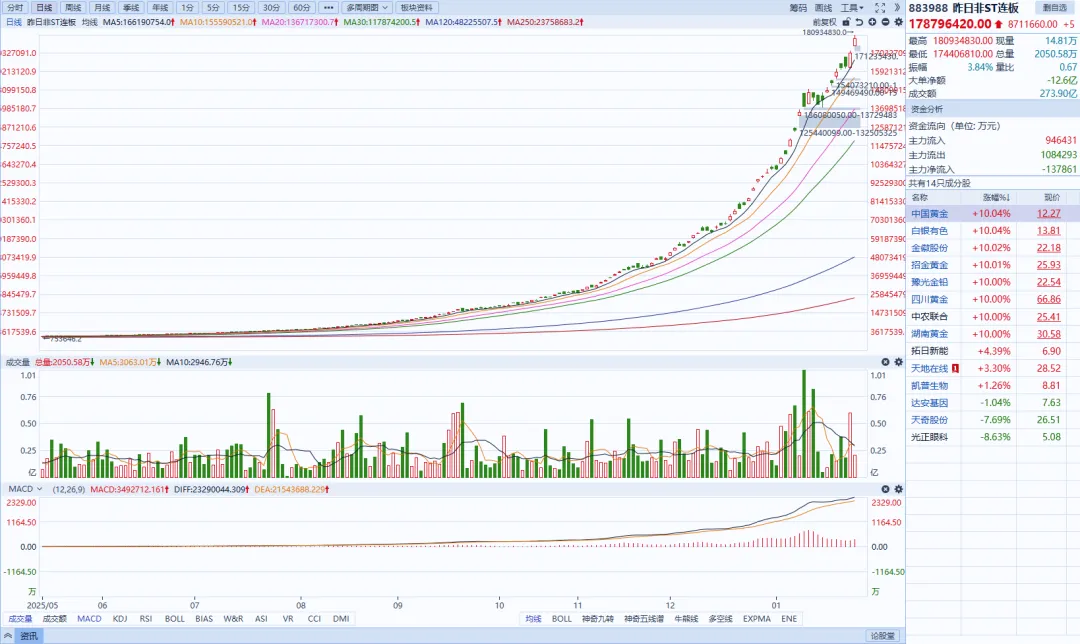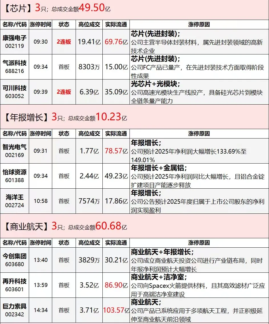 连板生态:今日全市场共80股涨停,连板股总数10只,26股封板未遂,封板率为75%(不含ST股、退市股)。焦点股方面,贵金属板块白银有色7连板、四川黄金10天6板、招金黄金8天5板,商业航天概念股巨力索具15天8板,农药股中农联合4连板。