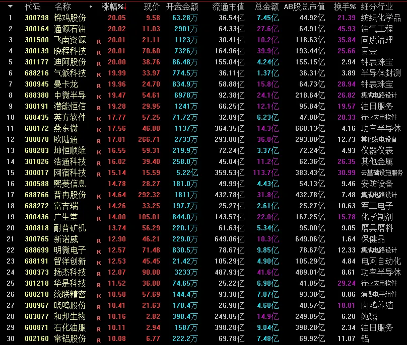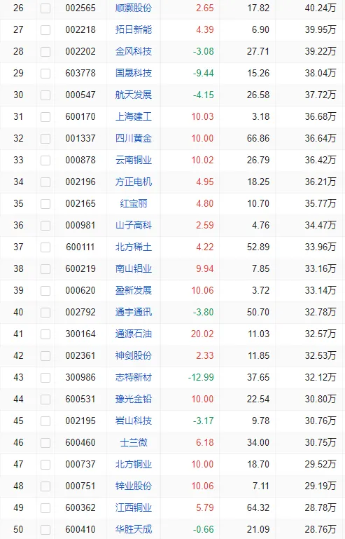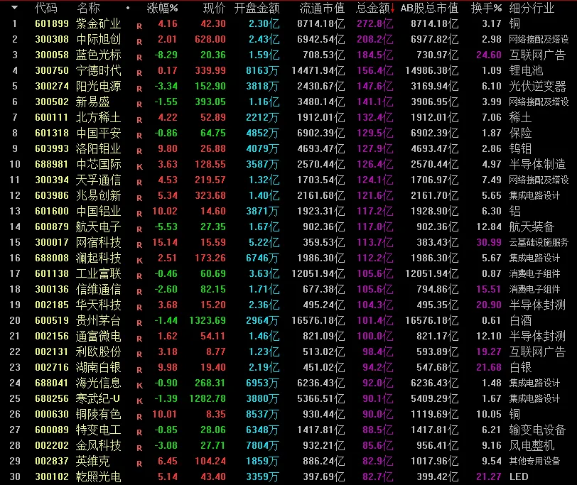 两市成交量前30个股