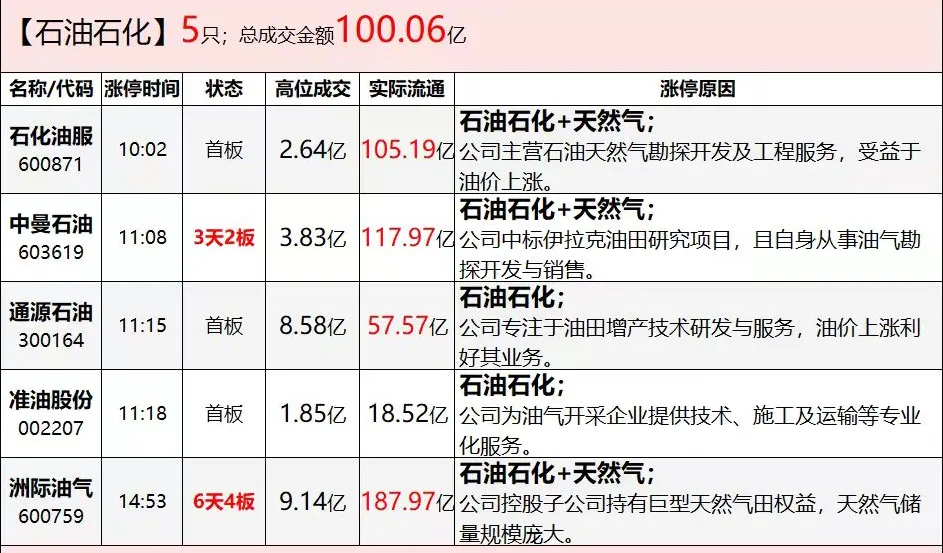 油气开采:板块强势,中国海油创历史新高,通源石油20%涨停。