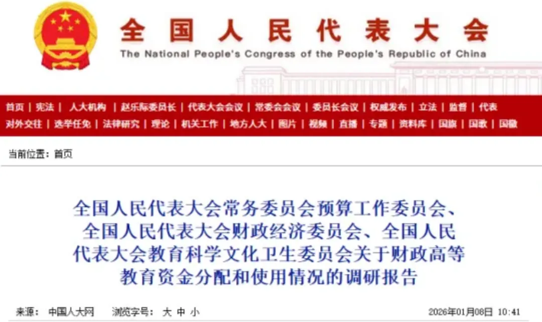 党的二十届四中全会审议通过的“十五五”规划建议提出,一体推进教育科技人才发展,推动高等教育提质扩容,提升职业学校办学能力,引导规范民办教育发展。2026年是“十五五”规划开局之年,要锚定教育强国建设总目标,统筹满足学龄人口需求和增加优质高等教育供给,平衡普通本科和高等职业教育,完善财政投入保障机制,优化支出政策和分配结构,强化资金资产债务贯通协调管理,不断提升财政资金效能,支持和促进高等教育高质量发展。