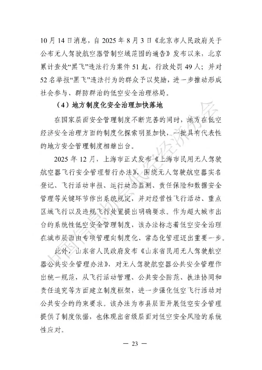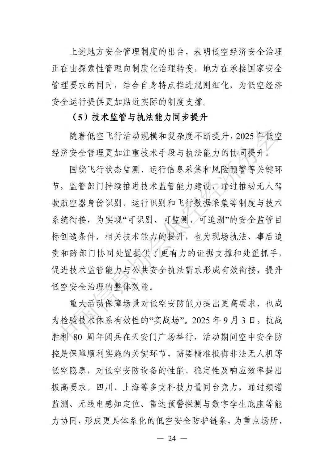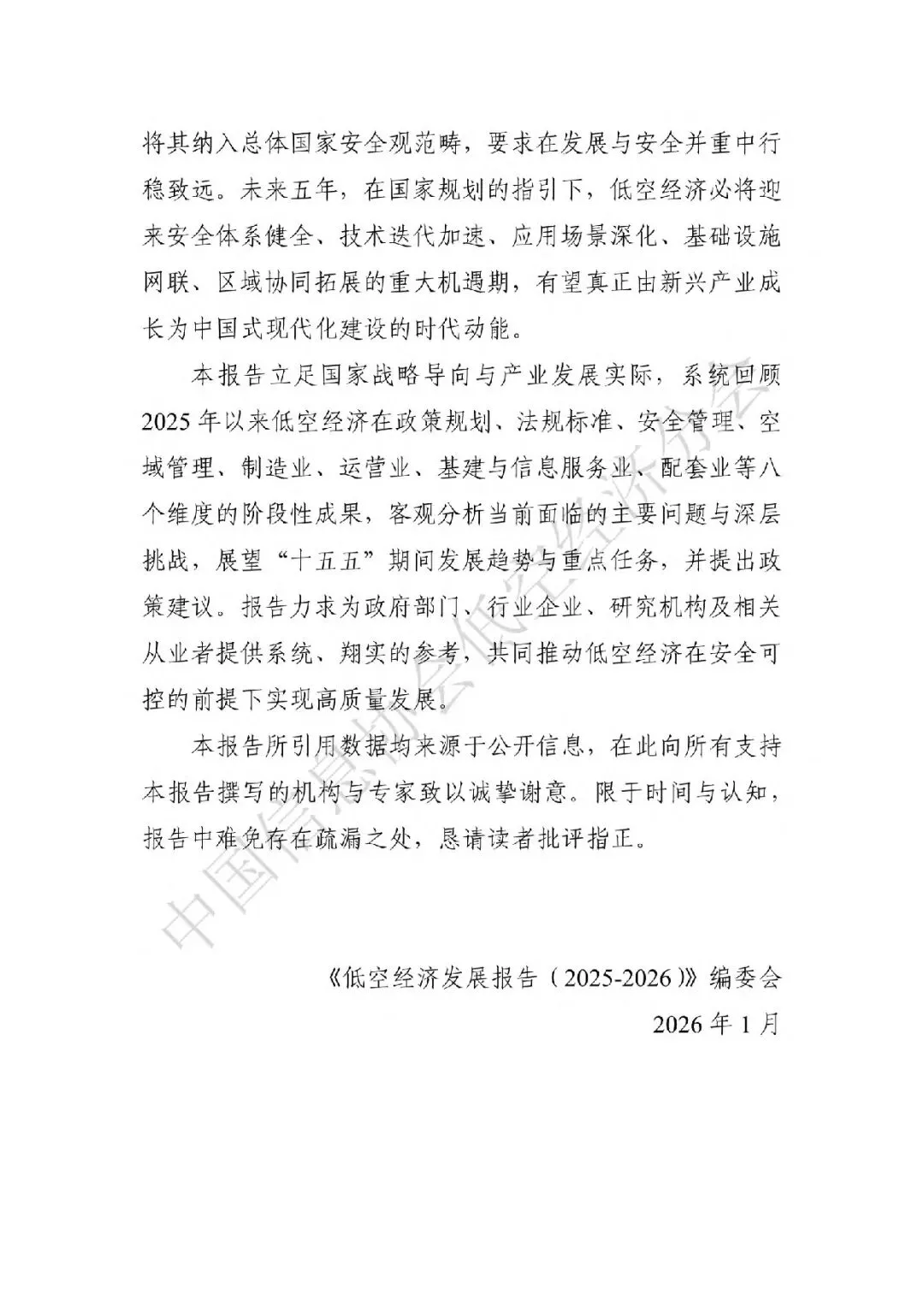 该报告立足国家战略导向与产业发展实际,力求为政府部门、行业企业、研究机构及相关从业者提供系统、翔实的参考,共同推动低空经济在安全可控的前提下实现高质量发展,成长为中国式现代化建设的时代动能。