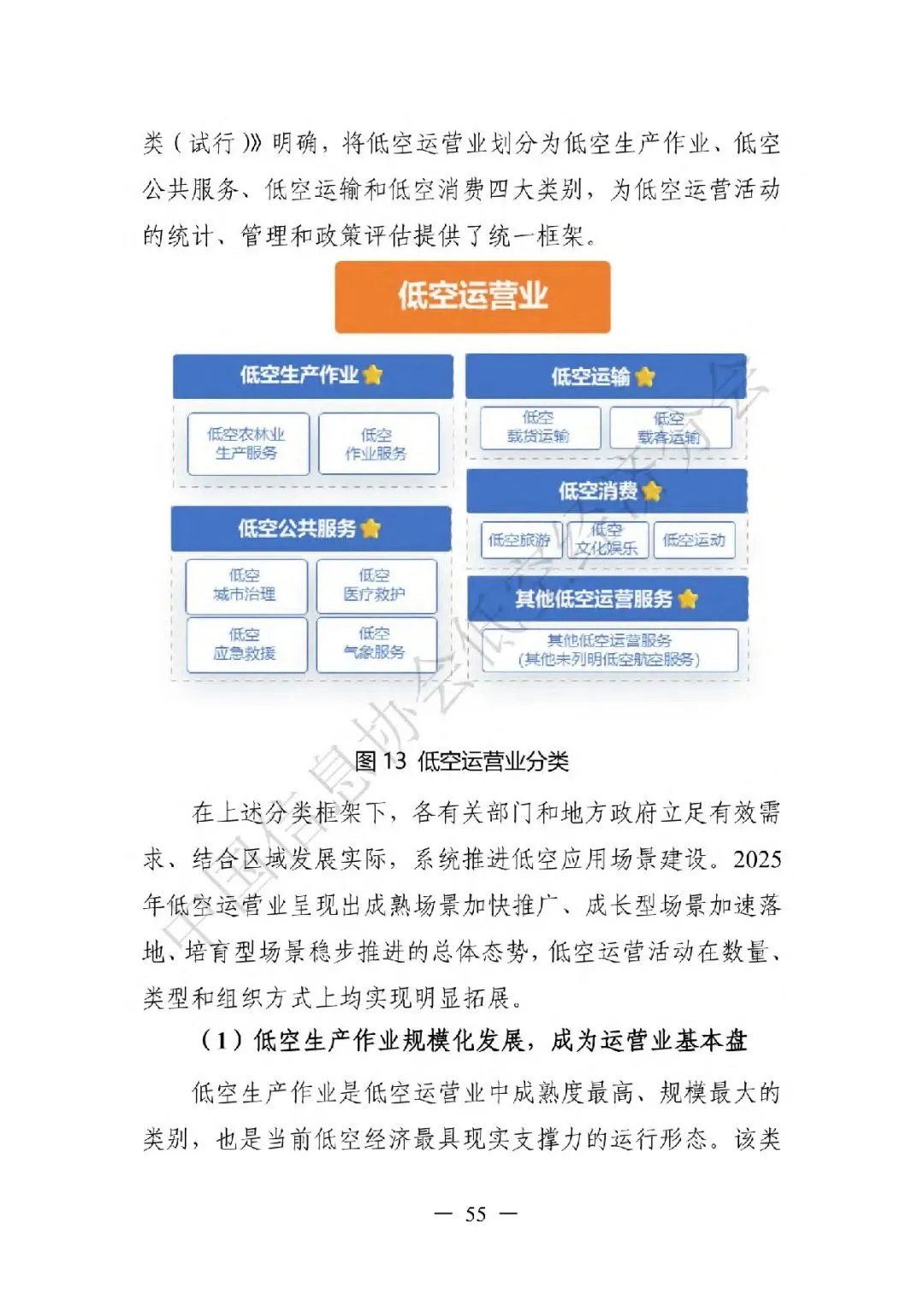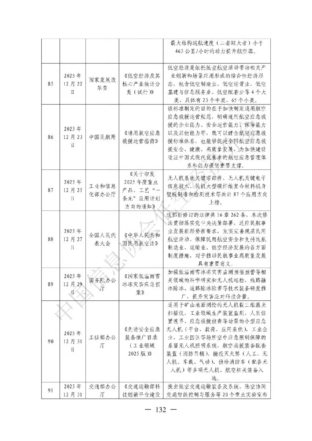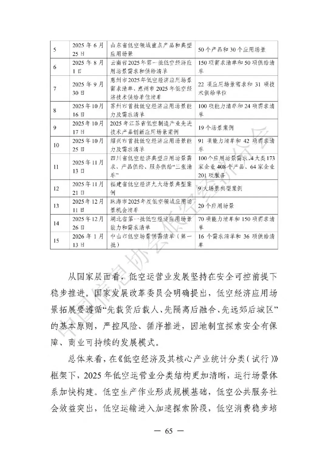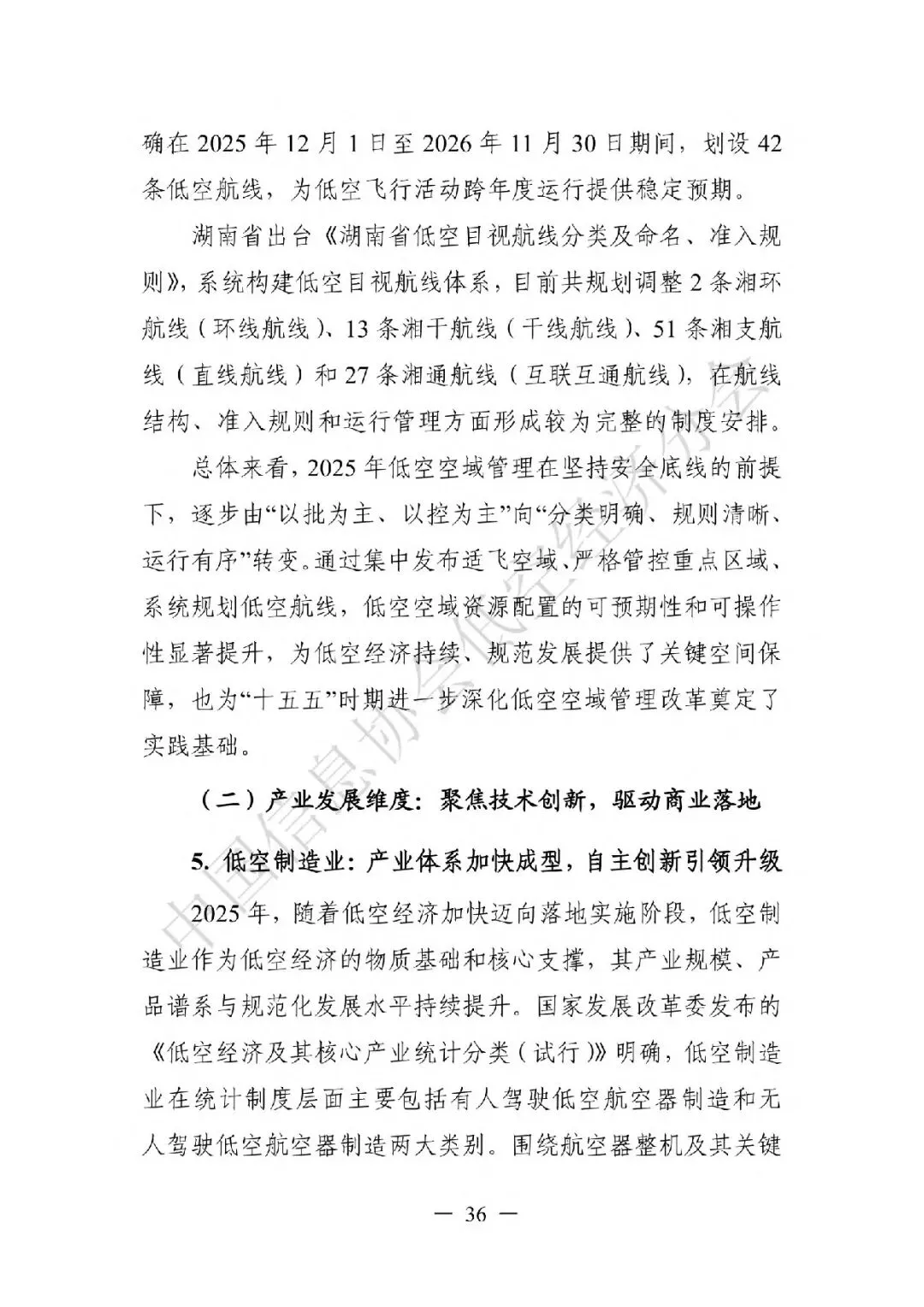 《报告》从八个维度系统梳理了2025年的发展脉络:在制度管理维度,顶层设计持续强化,《中华人民共和国民用航空法》完成系统性修订,首次从国家法律层面为无人驾驶航空器等活动提供制度框架;国家发展改革委发布《低空经济及其核心产业统计分类(试行)》,首次统一了产业统计口径;“三先三后”(先载货后载人、先隔离后融合、先远郊后城区)推进原则为行业安全有序发展指明了路径。在产业发展维度,低空制造业、运营业、基建与信息服务业、配套业协同发力,产业体系加快成型,应用场景持续拓展,商业落地步伐加速。